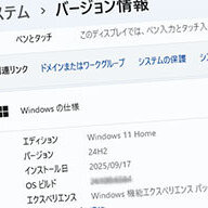 ちなみに今回のOS、正式にいうとWindows11 Home 24H2です。たぶんもう数か月で25H2に上書きされる予定。大きな変化はないという話ですが、Onedriveが生き返らないかだけは要注意です。